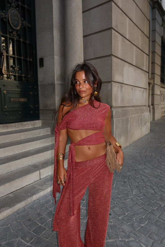 Gaia Pants in Shiny Terracotta - Shipping in 7 days