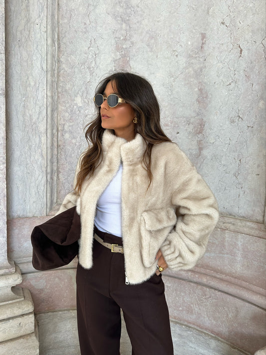 Cashmere and Wool Jacket with Fur Collar in Brown