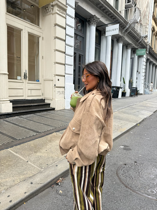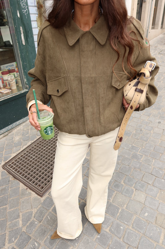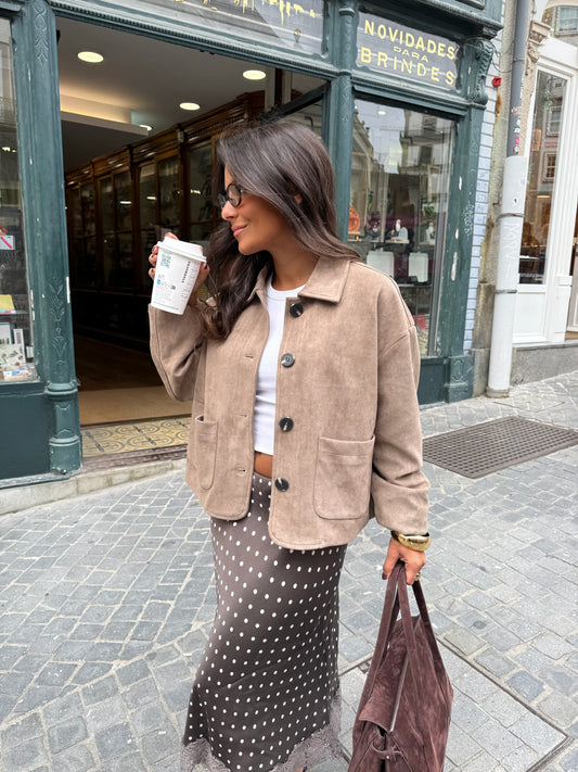 -15%Oversized Taupe Suede Jacket with Faux Fur Collar