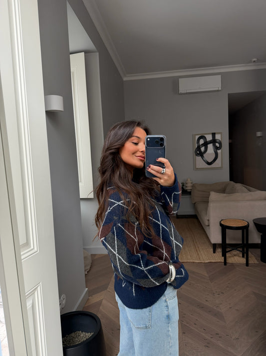 Sold OutBlue Diamond-Pattern Knit Sweater