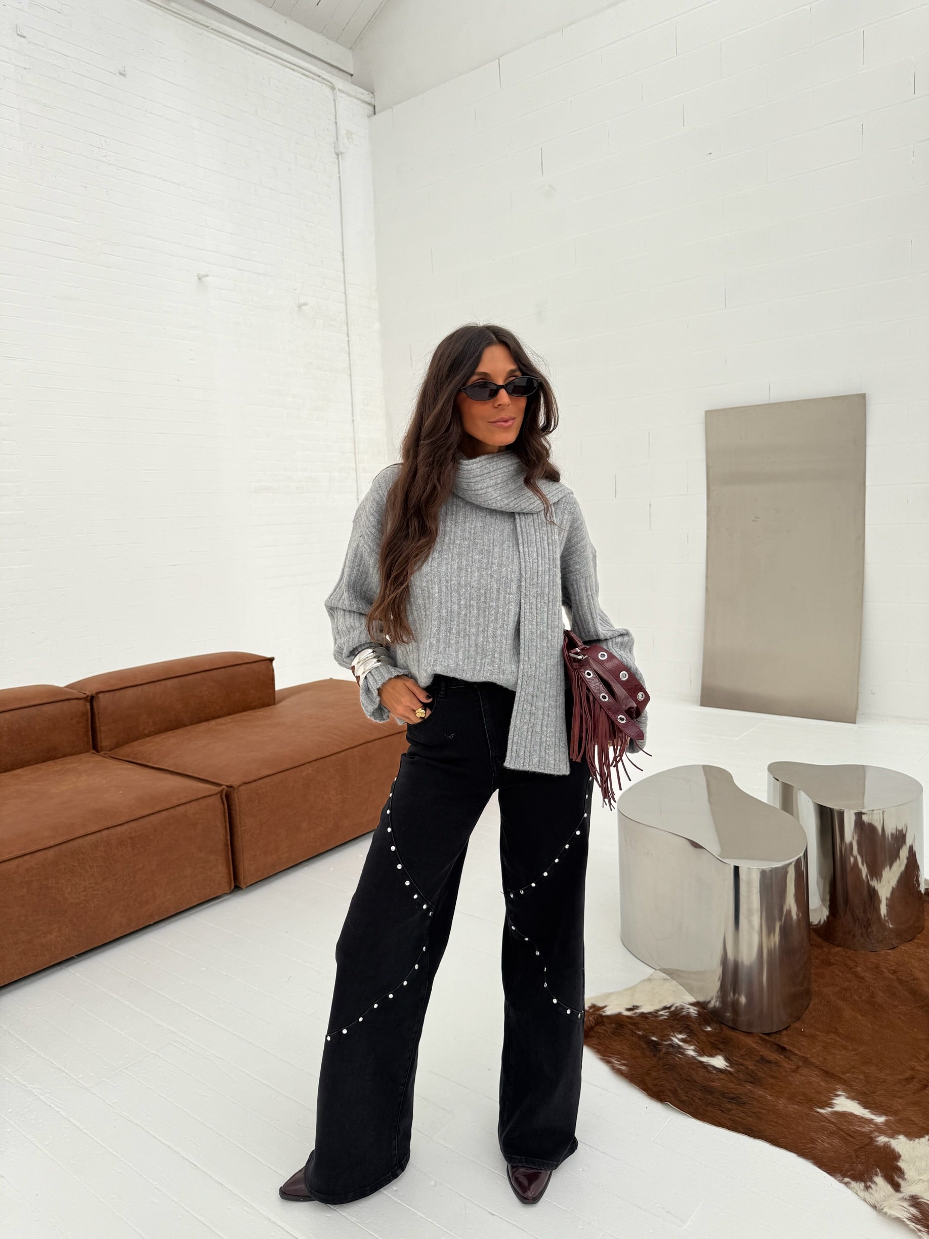 Black Studded Wide Pants - Shipping 01/12 to 05/12