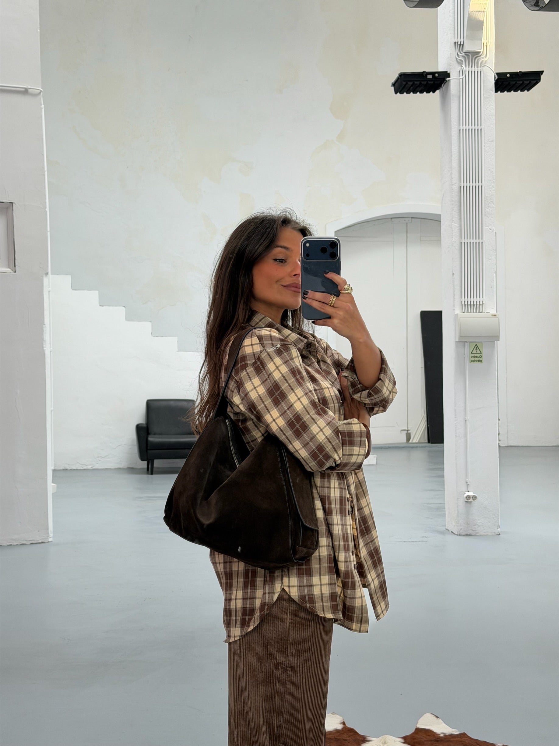 Brown and Beige Plaid Shirt