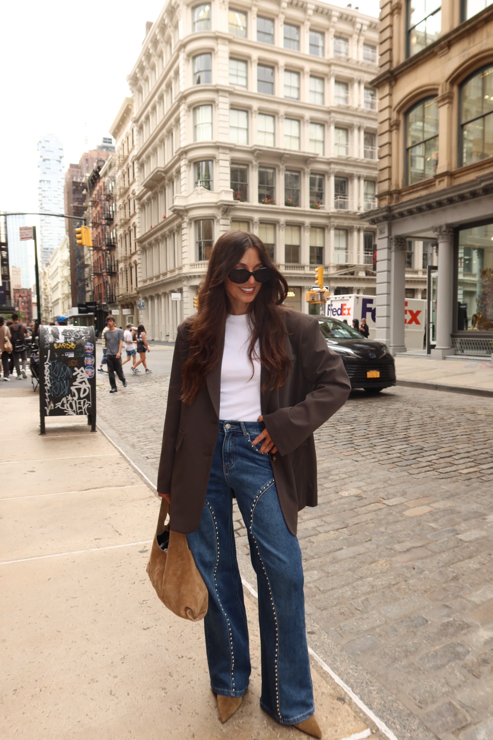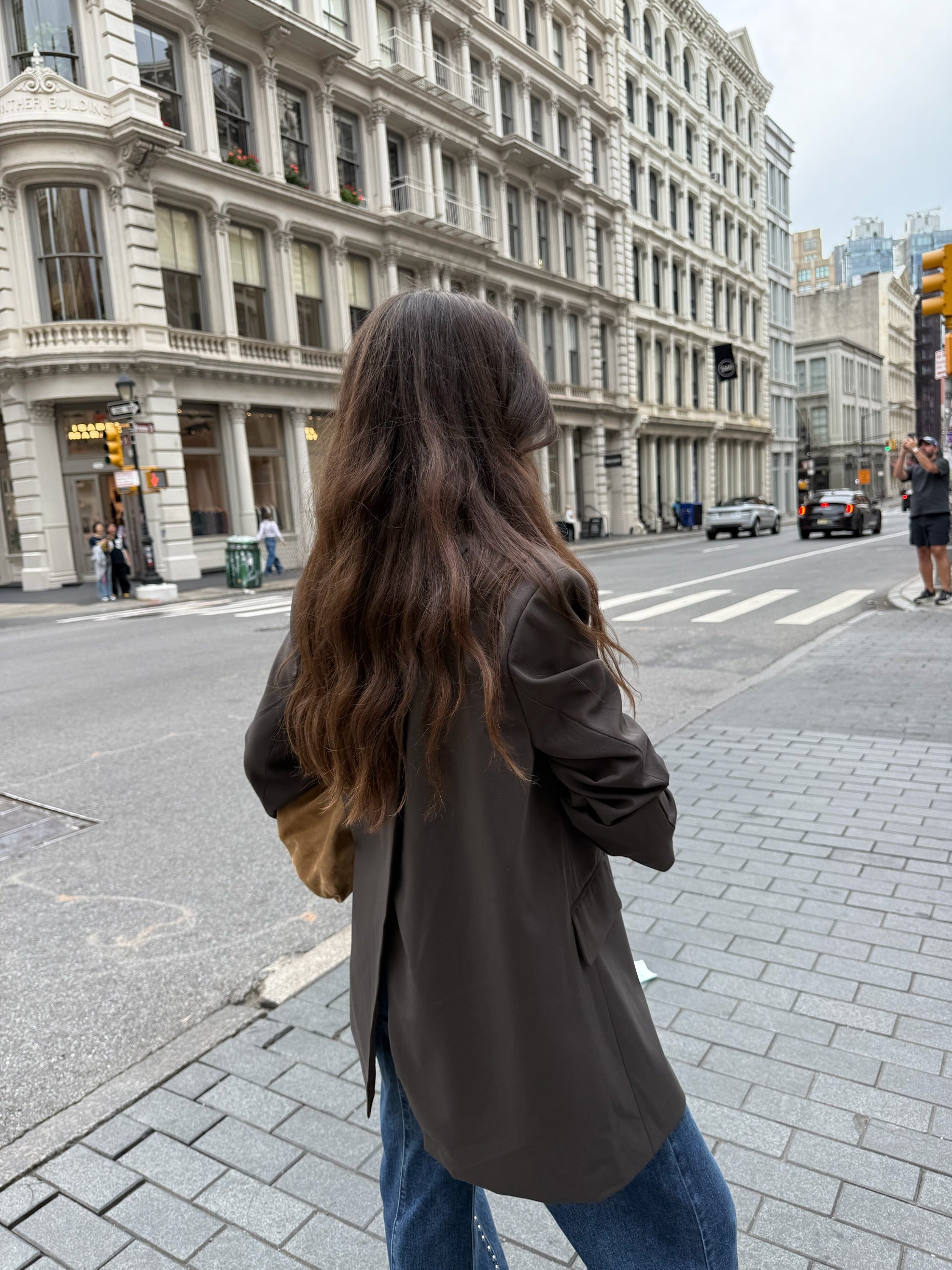 Tailored Blazer with Opened Back in Brown