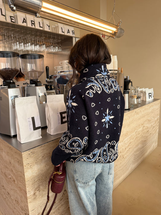 Coming Soon - Thursday 8PMCashmere and Wool Bandana Jacket in Dark Blue