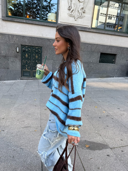 Oslo Knit Sweater in Blue and Brown - Shipping 12/11