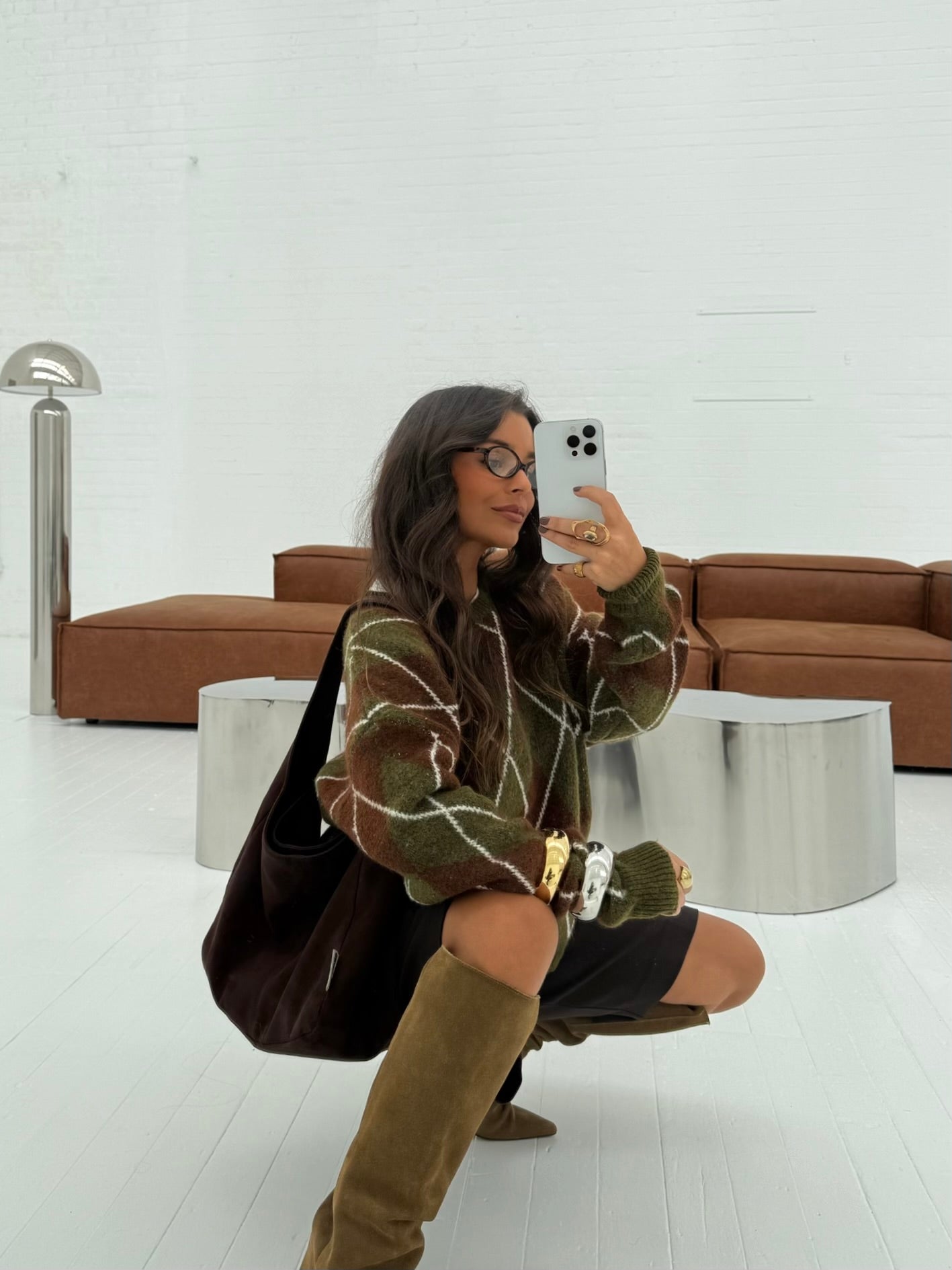 Green Diamond-Pattern Knit Sweater - Shipping from 8/12 to 12/12